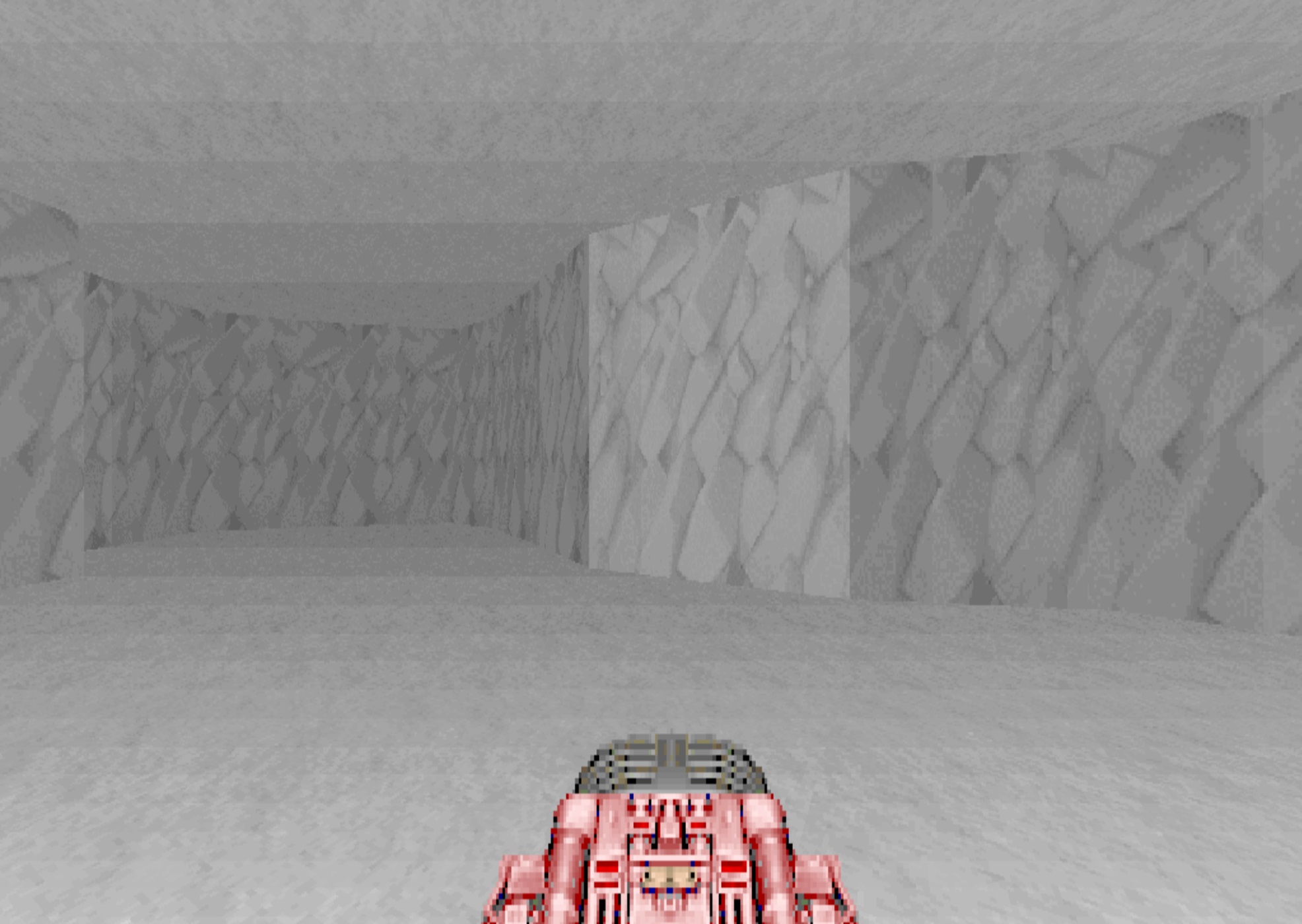 再如同为雪墙,这块的颜色明显比别的浅,试一试说不定就是个秘密地点。至于怎么试呢?直接走走看能不能穿过,如果不能就按一下空格(开门键)看能不能打开,如果还不行,那就给一枪看能不能打开。如果还不行,就只能继续,说不定随后某处有个开关打开后就把这里打开了,如果再次从这时经过,门就是开着的。